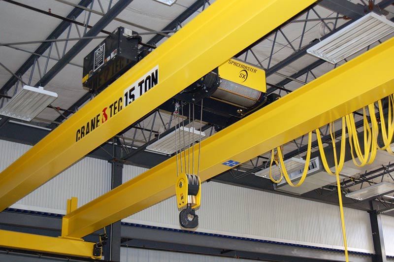 ج- جرثقیل با پل متحرک (Overhead Traveling Crane) جرثقیل متحرکی است که درارتفاع مناسبی زیر سقف کارخانه روی ریل حرکت کرده و بتواند با ر را در امتداد طول و عرض و ارتفاع کار جابه جا نماید .